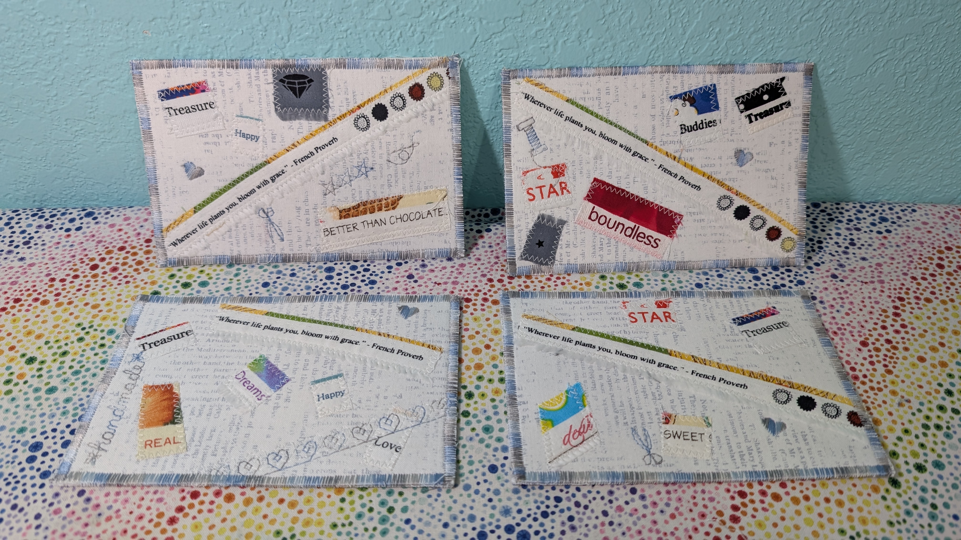 | Make a postcard and send it to someone you care about (even yourself!) | collage, embroidery, etc (see examples above) |